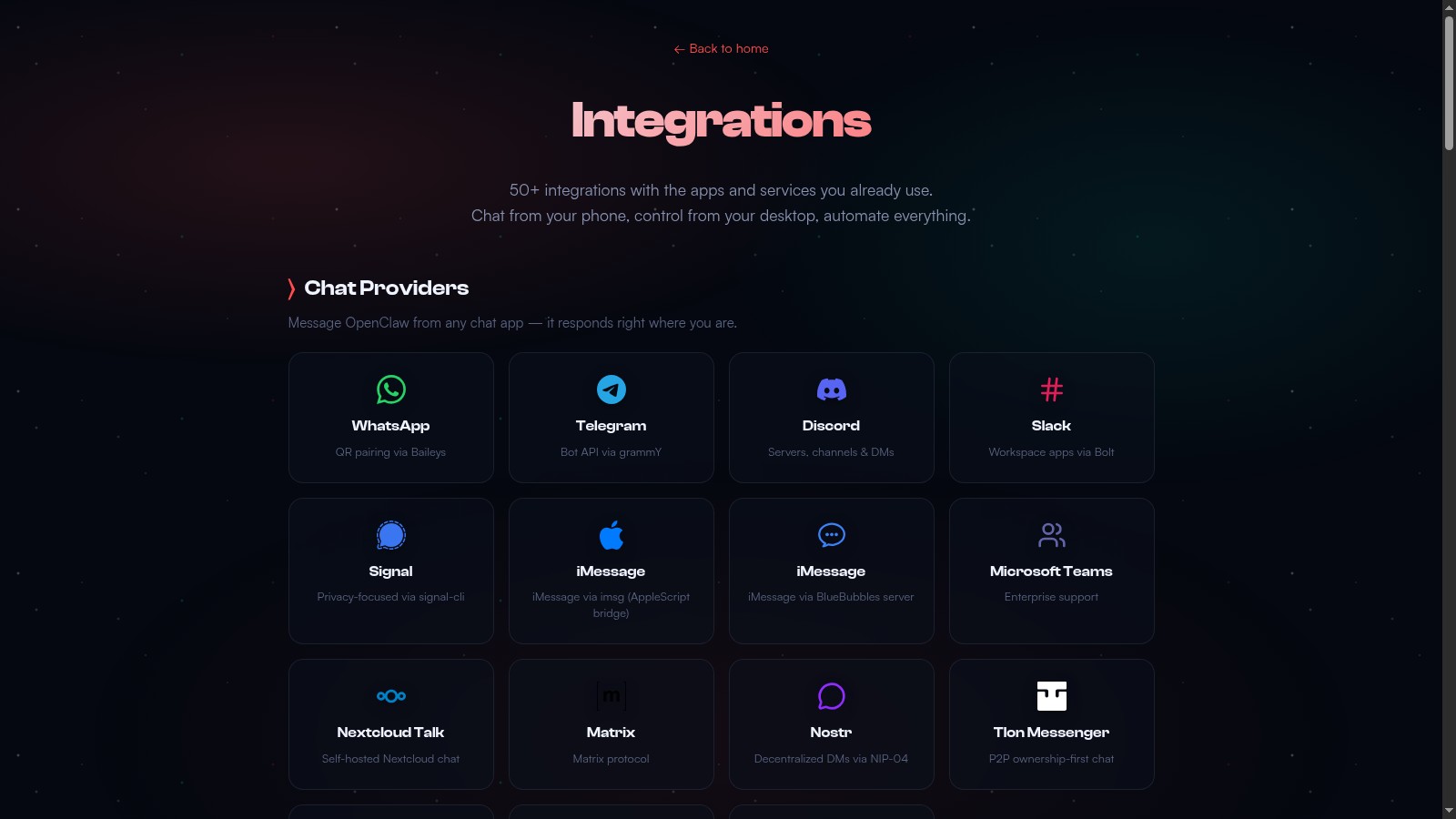 - Connect other channels alongside Discord (Telegram, Slack, etc.)